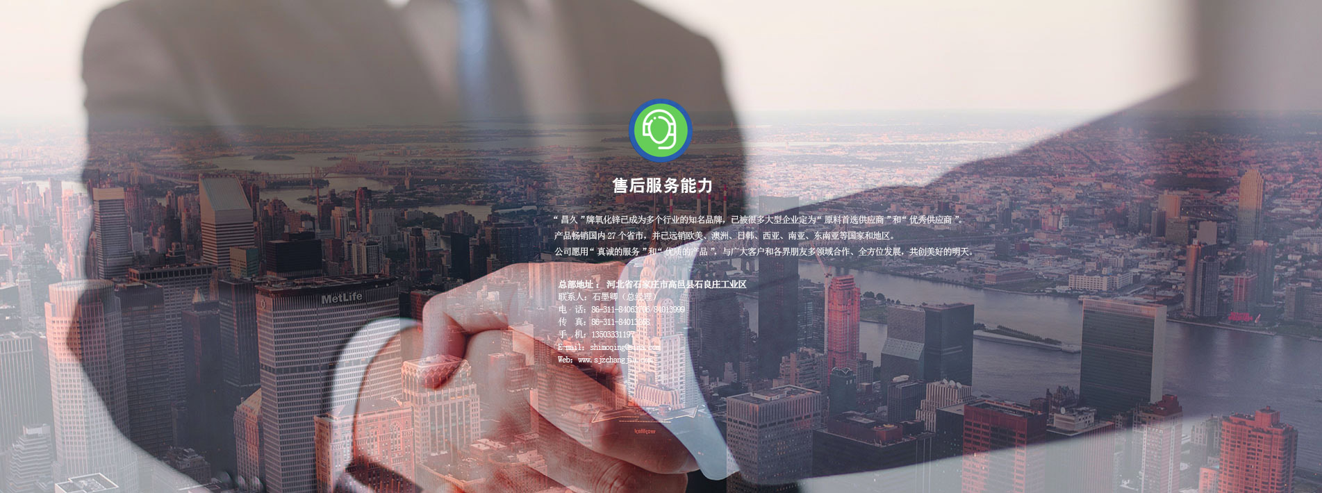 公司創建于1989年,公司座落在美麗的太行山下,107國道、京深高速、京廣鐵路貫穿高邑南北,交通十分便利.地理位置十分優越. 企業資產總額2800萬,占地60畝,現有職工130人,其中專業技術人員16人,主要產品有間接法氧化鋅(99.7%)年產量約10000噸,直接法氧化鋅(90%-99.5%),年產量約5000噸.高活性氧化鋅年產量3000噸,堿式碳酸鋅年生產量3000噸、是河北省氧化鋅優質供應商。本公司2008年還率先引進碳酸鎂,氧化鎂,硬脂酸、石蠟先進生產線,年產量6000噸。
